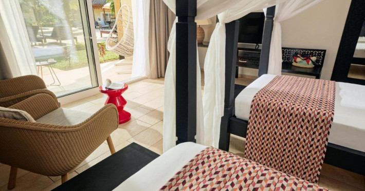 There is a shuttle between the hotel and the airport (for a fee). On the beach are beach towels available. The hotel TUI BLUE Bahari Zanzibar***** has a lobby bar as well as a jacuzzi. At the pool, pool towels are available for free. Furthermore, you can relax outdoors on the terrace and in the garden. You can store your luggage in the hotel's storage room. There is also a laundry service available at an additional cost to customers. Ironing equipment can be rented at the hotel for a fee. For your comfort there is a concierge service. For conventions and other business meetings, the hotel offers a business centre. Due to its barrier-free facilities , such as wheelchair accessible rooms, the hotel is also suitable for wheelchair users. Catering The drinks menu of the hotel includes coffee and tea. A picnic bench can be used by guests for self-catering. Sports & Leisure To keep your fitness up on holiday, there is a gym for guests to use. During your holiday you can also take part in aerobics and yoga courses. Also darts is offered at the hotel. A tennis court (at extra cost) can also be used by hotel guests. Furthermore, various water sports such as fishing, windsurfing, snorkelling and diving are offered in the area. For your wellbeing the hotel also offers massages (extra fee) and beauty treatments (extra fee). Your little ones are in good hands with the hotel`s babysitter service (extra fee) . In terms of adult entertainment, live music is presented on certain days. Additional information The hotel staff speak English, German, French, Italian and Arabic.There is a shuttle between the hotel and the airport (for a fee). On the beach are beach towels available. The hotel TUI BLUE Bahari Zanzibar***** has a lobby bar as well as a jacuzzi. At the pool, pool towels are available for free. Furthermore, you can relax outdoors on the terrace and in the garden. You can store your luggage in the hotel's storage room. There is also a laundry service available at an additional cost to customers. Ironing equipment can be rented at the hotel for a fee. For your comfort there is a concierge service. For conventions and other business meetings, the hotel offers a business centre. Due to its barrier-free facilities , such as wheelchair accessible rooms, the hotel is also suitable for wheelchair users. Catering The drinks menu of the hotel includes coffee and tea. A picnic bench can be used by guests for self-catering. Sports & Leisure To keep your fitness up on holiday, there is a gym for guests to use. During your holiday you can also take part in aerobics and yoga courses. Also darts is offered at the hotel. A tennis court (at extra cost) can also be used by hotel guests. Furthermore, various water sports such as fishing, windsurfing, snorkelling and diving are offered in the area. For your wellbeing the hotel also offers massages (extra fee) and beauty treatments (extra fee). Your little ones are in good hands with the hotel`s babysitter service (extra fee) . In terms of adult entertainment, live music is presented on certain days. Additional information The hotel staff speak English, German, French, Italian and Arabic.
