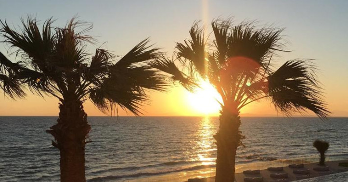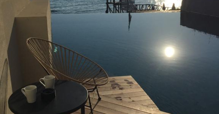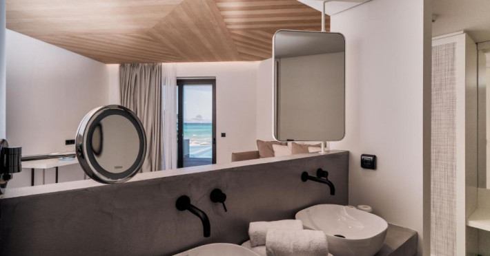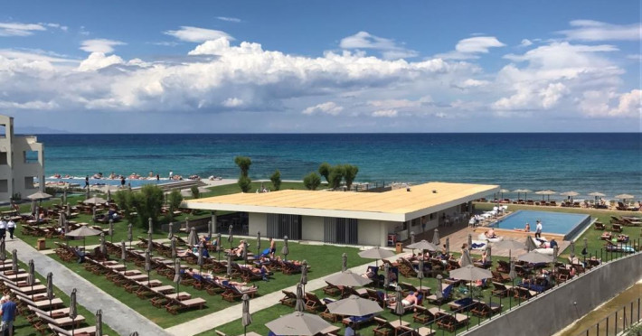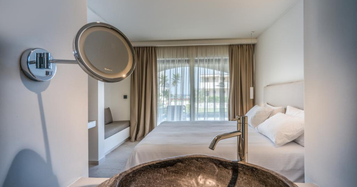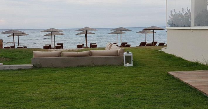 Caravel Suites are în apropiere o plajă cu nisip. Pe plajă există șezlonguri și umbrele de plajă.