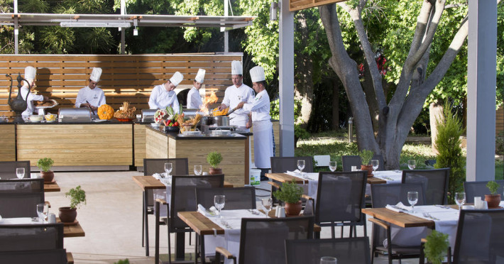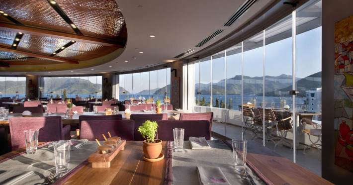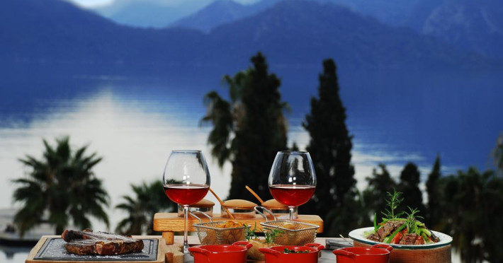 La Tui Blue Grand Azur oaspeții au la dispoziție 4 restaurante unde pot savura mâncăruri delicioase, în stil bufet sau à la carte. Preparate din bucătăria internațională și turcească așteaptă să fie degustate în fiecare zi la micul dejun, prânz și cină. Masa poate fi servită atât în interior, cît si în aer liber, pe terasă, în funcție de vreme. 4 baruri, dintre care unul la piscină, sunt disponibile cu o ofertă variată de băuturi răcoritoare și alcoolice. De asemenea , în cadrul proprietății, există cafenea și snack bar ideale pentru o gustare rapidă.