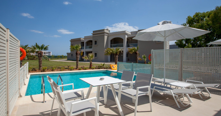 Acest hotel oferă tot ce se așteaptă turistul sofisticat; lux și confort, mai multe piscine și Spa, facilități pentru copii și sport, in cateva cuvinte decorurile ideale pentru evenimente sociale și de familie. Unitățile de cazare ale oaspeților oferă toate facilitățile: – aer condiționat, TV prin satelit, telefon, conexiune la internet, frigider, facilități pentru prepararea de ceai/cafea, halate de baie și papuci. Există o gamă largă de diverse tipuri de camere oferite, de la camere standard cu vedere la grădină și la mare, apartamente junior cu vedere la grădină sau la piscină comună pană la apartamente deluxe cu piscină privată.