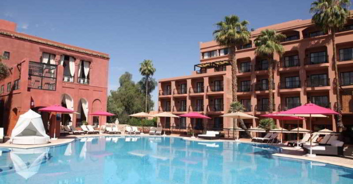 This hotel is situated in the heart of Marrakech, and in the immediate vicinity of the Jemaa el-Fna Square which abounds with souks, restaurants, food stalls and cafes. Places of interest and landmarks are plentiful such as the El Badi Palace, Ourika Valley and the Jardin Majorelle. Visitors can also enjoy a relaxing drive in the local caleche, horse drawn carriages. Facilities include two outdoor pools, one is heated in winter, clay tennis court and a spa offering a variety of massages, treatments and therapies. There are three restaurants including one serving Indian food and two bars, one in the lobby and one by the pool. .The rooms are all spacious and attractively furnished in a contemporary style with Arabic details. They have balconies or terraces with pool or garden views, air-conditioning and satellite television. Some have whirlpool baths.This hotel is situated in the heart of Marrakech, and in the immediate vicinity of the Jemaa el-Fna Square which abounds with souks, restaurants, food stalls and cafes. Places of interest and landmarks are plentiful such as the El Badi Palace, Ourika Valley and the Jardin Majorelle. Visitors can also enjoy a relaxing drive in the local caleche, horse drawn carriages. Facilities include two outdoor pools, one is heated in winter, clay tennis court and a spa offering a variety of massages, treatments and therapies. There are three restaurants including one serving Indian food and two bars, one in the lobby and one by the pool. .The rooms are all spacious and attractively furnished in a contemporary style with Arabic details. They have balconies or terraces with pool or garden views, air-conditioning and satellite television. Some have whirlpool baths.