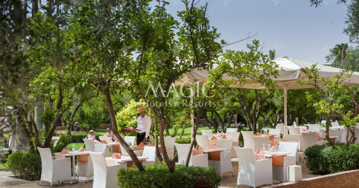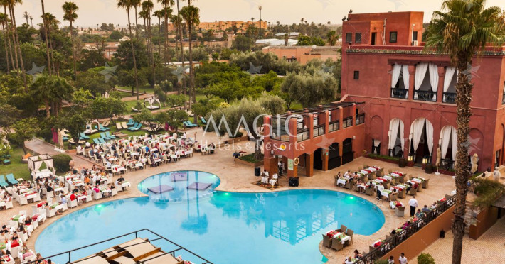 The hotel Medina Gardens Marrakech Adults Only is equipped with a 24h reception (check-in is possible around the clock), a lobby bar, Wi-Fi as well as a TV lounge with satellite TV. In the outdoor area of the property you will find a garden as well as a pool (open all year), where sun loungers and sun umbrellas are available for free. Furthermore, outside you can find a sun terrace. For your entertainment, the hotel offers a casino. You can store your luggage in the hotel's storage room. For your comfort, in addition to the concierge service the hotel page will ensure you are looked after. If necessary, you can contact the medical centre. For conventions and other business meetings, the hotel offers a conference area with fax. If you want to explore the holiday region, you can use the car rental service close to the hotel. Due to its barrier-free facilities , such as barrier-free entrances and wheelchair accessible rooms, the hotel is also suitable for wheelchair users. Catering Your physical well-being is catered for by a restaurant with terrace and the pool bar. The drinks menu of the hotel includes water, soft drinks and wine. A picnic bench can be used by guests for self-catering. Sports & Leisure At the hotel grounds, a gym (open 24 hours a day) awaits your visit. A sauna awaits you in the spa. The hotel also offers massages. For the entertainment of adults live music is presented on certain days.The hotel Medina Gardens Marrakech Adults Only is equipped with a 24h reception (check-in is possible around the clock), a lobby bar, Wi-Fi as well as a TV lounge with satellite TV. In the outdoor area of the property you will find a garden as well as a pool (open all year), where sun loungers and sun umbrellas are available for free. Furthermore, outside you can find a sun terrace. For your entertainment, the hotel offers a casino. You can store your luggage in the hotel's storage room. For your comfort, in addition to the concierge service the hotel page will ensure you are looked after. If necessary, you can contact the medical centre. For conventions and other business meetings, the hotel offers a conference area with fax. If you want to explore the holiday region, you can use the car rental service close to the hotel. Due to its barrier-free facilities , such as barrier-free entrances and wheelchair accessible rooms, the hotel is also suitable for wheelchair users. Catering Your physical well-being is catered for by a restaurant with terrace and the pool bar. The drinks menu of the hotel includes water, soft drinks and wine. A picnic bench can be used by guests for self-catering. Sports & Leisure At the hotel grounds, a gym (open 24 hours a day) awaits your visit. A sauna awaits you in the spa. The hotel also offers massages. For the entertainment of adults live music is presented on certain days.