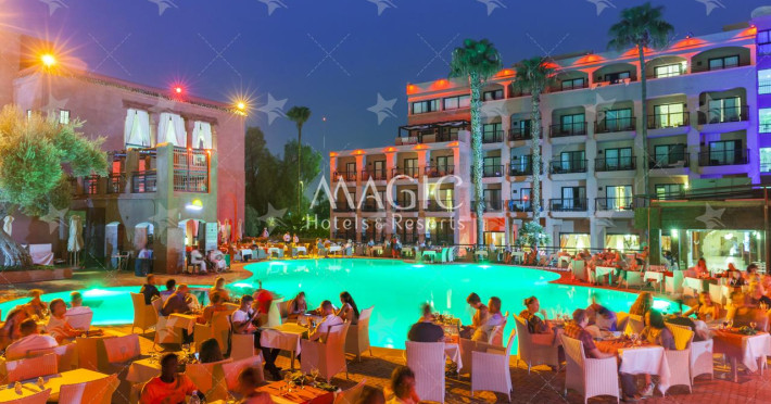 The hotel Medina Gardens Marrakech Adults Only is equipped with a 24h reception (check-in is possible around the clock), a lobby bar, Wi-Fi as well as a TV lounge with satellite TV. In the outdoor area of the property you will find a garden as well as a pool (open all year), where sun loungers and sun umbrellas are available for free. Furthermore, outside you can find a sun terrace. For your entertainment, the hotel offers a casino. You can store your luggage in the hotel's storage room. For your comfort, in addition to the concierge service the hotel page will ensure you are looked after. If necessary, you can contact the medical centre. For conventions and other business meetings, the hotel offers a conference area with fax. If you want to explore the holiday region, you can use the car rental service close to the hotel. Due to its barrier-free facilities , such as barrier-free entrances and wheelchair accessible rooms, the hotel is also suitable for wheelchair users. Catering Your physical well-being is catered for by a restaurant with terrace and the pool bar. The drinks menu of the hotel includes water, soft drinks and wine. A picnic bench can be used by guests for self-catering. Sports & Leisure At the hotel grounds, a gym (open 24 hours a day) awaits your visit. A sauna awaits you in the spa. The hotel also offers massages. For the entertainment of adults live music is presented on certain days.