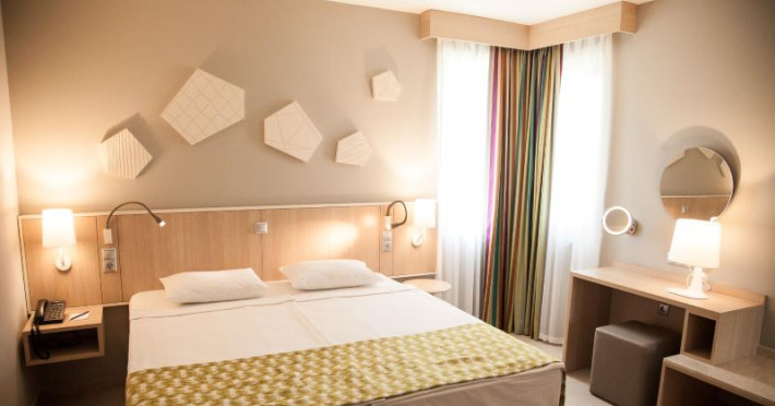 Fiecare cameră dispune de un balcon sau o terasă cu balcon, pardoseală din gresie, baie cu duș și toaletă, uscător de păr, telefon, televizor cu satelit, minibar, seif gratuit, conexiune Wi-Fi gratuită în cameră și sistem de aer condiționat cu reglare individuală.
