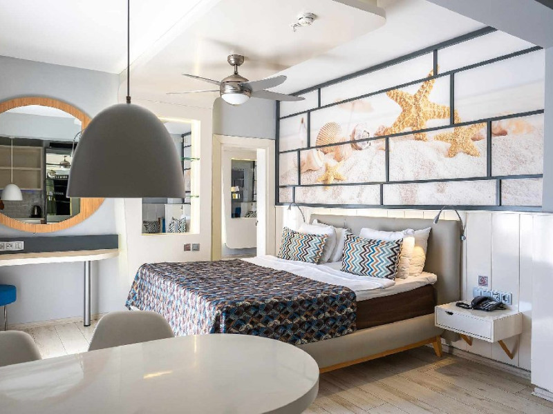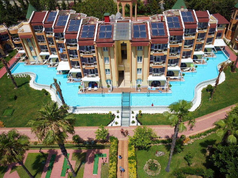 Descriere: Hotel modern, potrivit pentru familii, oferind activitati pentru copii de toate varstele, de la bebelusi pana la adolescenti. Principala atractie este parcul acvatic cu tobogane grozave de aventura dar puteti participa de asemenea la activitati de divertisment si agrement pentru familii, oferte sportive si tratamente spa.Localizare: Hotelul este situat in Konakli, la 8 km de populara statiune Alanya, la 130 km de Aeroportul Antalya si la 53 km de Aeroportul Gazipasa. Plaja de nisip se afla la aproximativ 50 m de hotel.