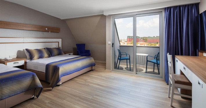 Sunt disponibile 236 camere. Camerele de la Tui Blue Side sunt dotate cu aer condiționat, Tv cu canale prin satelit și seif. Oaspeții au la dispoziție serviciul de room service pentru a servi masa sau diverse băuturi. În camere există baie cu cadă sau duș prevăzută cu foehn. Oaspeții au acces gratuit la serviciul Wi-fi în camere. Curățenia in cameră se face zilnic.