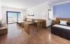 The apart hotel TUI BLUE Suite Princess (Adults Only) is located next to a beach. The city centre is also just a few steps away. The hotel has a 24h reception, Wi-Fi, a boutique, a hairdresser as well as a TV lounge. In the outdoor area you will find a heated pool (open all year), where sun umbrellas are available for free. Furthermore, you can relax outdoors on the sun terrace. Your valuables can be stored in the hotel safe. For your comfort the hotel page will ensure you are looked after. The rooms are cleaned. If necessary, you can contact the medical centre (for a fee). If you want to explore the holiday region, you can use the car rental service close to the hotel (extra fee). Due to its barrier-free facilities the hotel is also suitable for wheelchair users. Catering Breakfast is offered from the buffet. Lunch and dinner are also served from the buffet. Your physical well-being is catered for by a buffet restaurant. Distances