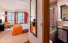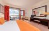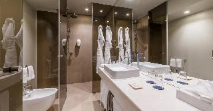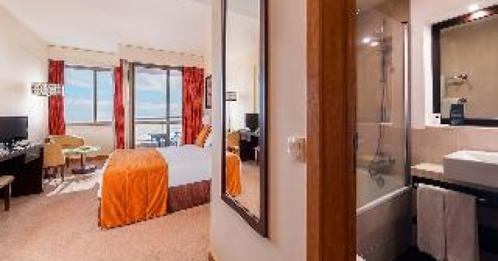 This exclusive hotel is located in quiet surroundings, offering panoramic views over the town and only 200 m from the sea as well as just 2 km from the centre. Various shopping facilities, restaurants and bars (each around 100 m away), as well as links to the public transport network (50 m) can be found in the vicinity. The well-known Lido, (sea swimming pool) as well as the nearest nightclub can be reached within 15 minutes. This hotel comprises a total of 119 doubles and 12 suites spread over 7 floors. A lobby awaits guests with 24-hour reception service, safes and lifts. Facilities include an internet desk, a restaurant and a bar. There are also laundry services, medical assistance and a car park. The comfortably furnished rooms come with an en suite bathroom with hairdryer, a direct dial telephone, satellite/cable TV with VOD, a minibar, a king-sized bed, a safe, coffee and tea facilities a balcony and central heating. The well-kept outdoor complex is home to a swimming pool, snack bar, sun loungers and parasols. Additionally, the hotel offers a sauna, a gym and a massage services (additional charges apply). A seasonal evening entertainment programme with dance, live international shows and live music provide amusement for guests. Breakfast is offered to guests in the mornings and can be selected from a buffet. The midday may be chosen from a menu and evening meal is a Buffet Themed party with live cocking station . Special dietary requirements as well as individual dishes may be prepared on request.Datorita dinamicitatii domeniului disponibilitatea ofertelor se modifica de la un moment la altul. De aceea ofertele sunt valabile in limita locurilor disponibile. Agentia nu este responsabila pentru eventualele neconcordante care pot aparea intre informatiile privind tarifele si alte detalii din site si informatiile primite in agentie. In aceste cazuri vor avea prioritate, intotdeauna, informatiile primite in agentie.