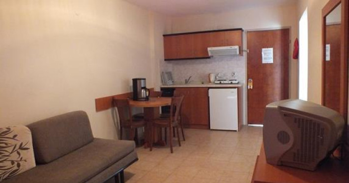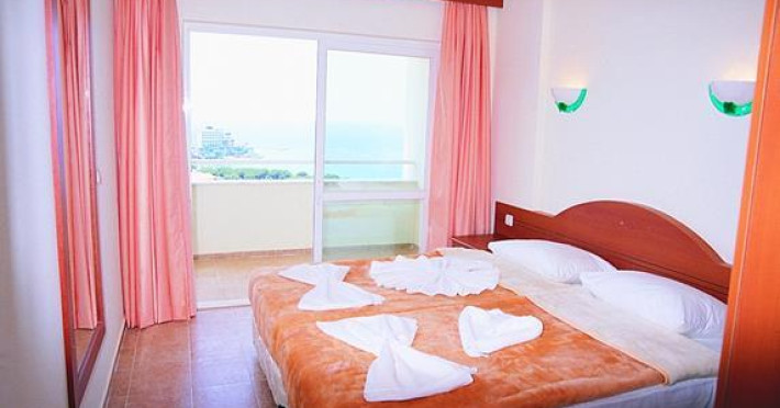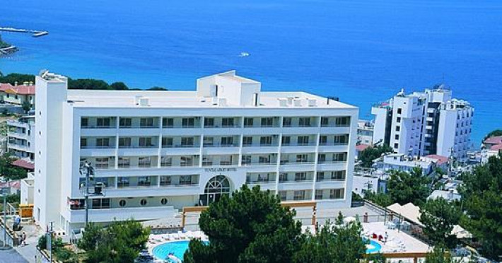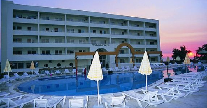 The Tuntas Apartments Kusadasi is a modern hotel in an elevated position on a hill surrounded by trees with magnificent view of Ladies Beach and Samos Island. This hotel is an ideal base for families and couples in a relaxing and quite environment. The facilities and activities: Good standards and welcoming homely feel makes this hotel an ideal choice. Location : 250m from Ladies Beach; 2,5km to the south of the resort centre; 100m to dolmus stop and 150m to Ladies Beach centre. Features : Large swimming pool; sun terrace with free sun loungers and parasols; pool bar serves snacks; restaurant serves breakfast and meals; lobby bar; satellite TV; on site mini-market. Activities : Water sports at Ladies Beach in high season, Pool Table, Horse riding, soft animation,Table tennis, Dart, Computer games, Free internet at Lobby. 1 bedroom apartments (2-4 persons) have separate twin bedroom, lounge with double sofa bed, telephone, kitchenette with fridge, kettle, full bathroom and large balcony. ------------------------- Standard room information 1 Bedroom Apartments: (2-4 persons): Have separate twin bedroom, living/dining area with double sofa bed, kitchenette with fridge, kettle and toaster, coffe machine, telephone, tv, full bathroom and balcony. Air conditioning and safe box are available for hire. For more details click hereDatorita dinamicitatii domeniului disponibilitatea ofertelor se modifica de la un moment la altul. De aceea ofertele sunt valabile in limita locurilor disponibile. Agentia nu este responsabila pentru eventualele neconcordante care pot aparea intre informatiile privind tarifele si alte detalii din site si informatiile primite in agentie. In aceste cazuri vor avea prioritate, intotdeauna, informatiile primite in agentie.