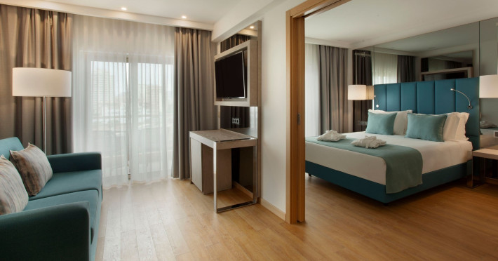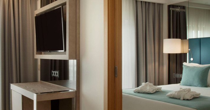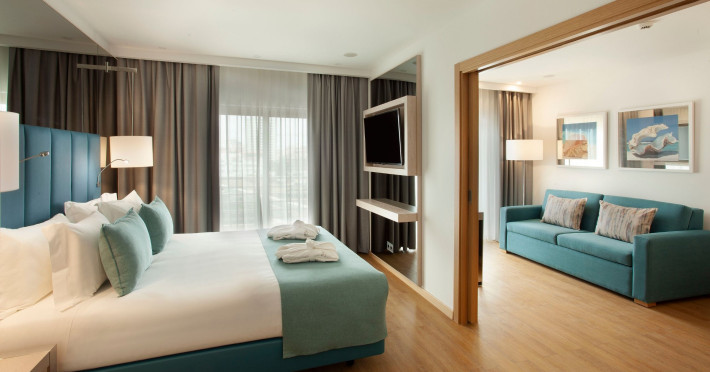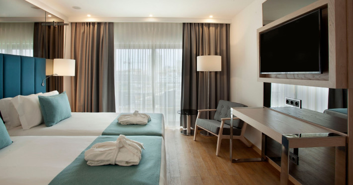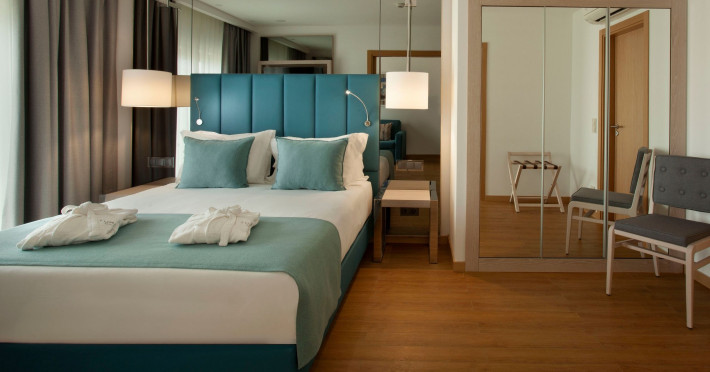 Around 300 m from a public sandy beach is located the accommodation Turim Presidente Hotel. The nearest bars and restaurants can be found at a distance of around 100 m. The city centre is around 1 km away. There is a shuttle service between the hotel and the airport. Nearby there is a disco which offers entertainment in high season. The beach is awarded a blue flag. Here, there are cushions available. The air-conditioned, GPS-verified hotel has a 24h reception (check-in is possible around the clock), a lobby bar, Wi-Fi, internet access, a lift, a first aid kit, parking spaces (limited) as well as a TV lounge with satellite TV. In the outdoor area you will find a pool (open all year), where pool towels are available for free. For children there is also a children's pool. Furthermore, outside you can find a terrace. In addition, the hotel Turim Presidente Hotel is video-monitored 24h a day. For very young guests, kid`s chairs can be provided. You can store your luggage in the hotel's storage room. There is also a laundry service. Ironing equipment can be borrowed at the hotel. The energy supply is 230 Volts. For conventions and other business meetings, the hotel offers a business centre. If you want to explore the holiday region, you can use the car and motorbike rental service close to the hotel. In addition, the hotel sells tickets for excursions. For guests on their honeymoon, the hotel has special offers such as sparkling wine. The hotel requires that all guests pay a deposit upon arrival. American Express and Euro/Master Card are accepted as means of payment. Due to its barrier-free facilities , such as a sliding door in the entrance area, a hotel door that can be opened manually, barrier-free entrances, wheelchair accessible rooms and wheelchair-accessible bathrooms, the hotel is also suitable for wheelchair users. Catering As catering services the hotel offers half board. Breakfast is offered from the buffet. Dinner is also served as a buffet, as a set meal or à la carte. For the meals, there are a restaurant with terrace (gluten-free and vegetarian dishes) and the pool bar. Distances- Airport: approximately at 72 km