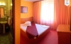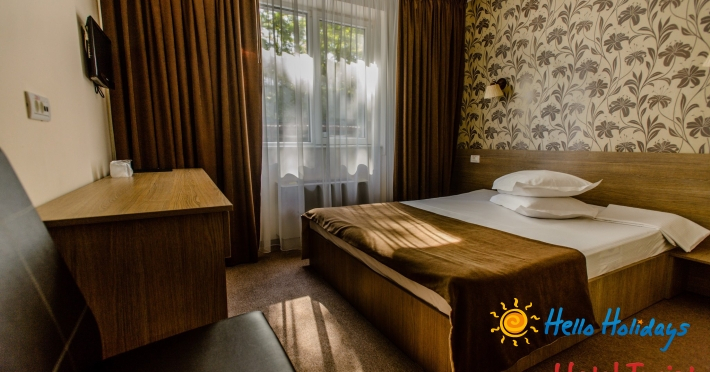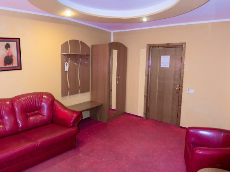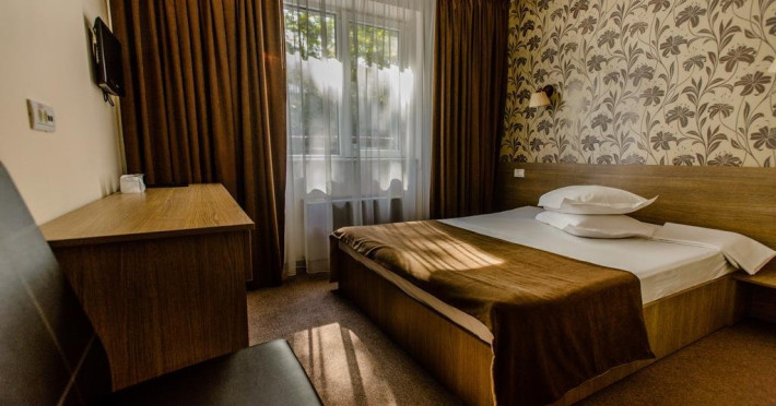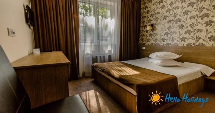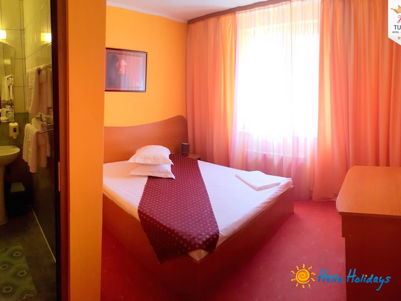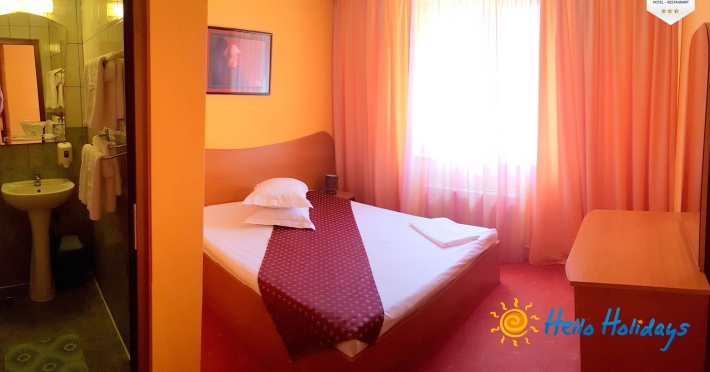 Camera dubla cu pat matrimonial: hotelul dispune de 37 camere duble cu pat matrimonial, ideale pentru cazarea unei persoane, a cuplurilor sau a cuplurilor cu copil mic.