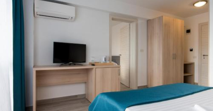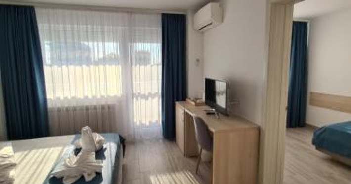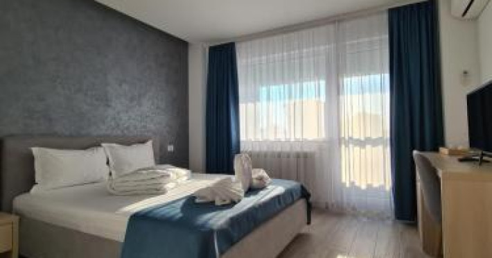 Situated in Mamaia Nord, 600 metres from Mamaia Beach, Turquoise Boutique features accommodation with a garden, free private parking, a terrace and a bar. Built in 2018, this 3-star hotel is within 6.4 km of Siutghiol Lake and 12 km of City Park Mall. The rooms are fitted with a balcony with a city view.All rooms are fitted with air conditioning, a flat-screen TV with satellite channels, a fridge, a kettle, a shower, free toiletries and a desk. Featuring a private bathroom with a hairdryer, rooms at the hotel also feature free WiFi, while some rooms also boast a garden view. Guest rooms have a wardrobe.Ovidiu Square is 17 km from Turquoise Boutique, while Dobrogea Gorges is 39 km from the property. Mihail Kogalniceanu International Airport is 19 km away. In response to Coronavirus (COVID-19), additional safety and sanitation measures are in effect at this property.Disclaimer notification: Amenities are subject to availability and may be chargeable as per the hotel policy.Datorita dinamicitatii domeniului disponibilitatea ofertelor se modifica de la un moment la altul. De aceea ofertele sunt valabile in limita locurilor disponibile. Agentia nu este responsabila pentru eventualele neconcordante care pot aparea intre informatiile privind tarifele si alte detalii din site si informatiile primite in agentie. In aceste cazuri vor avea prioritate, intotdeauna, informatiile primite in agentie.