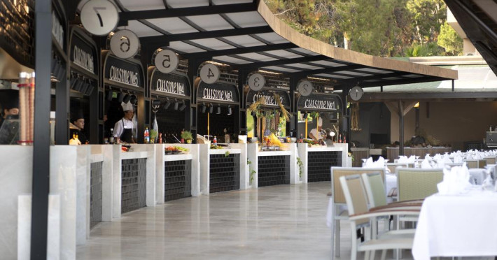 La Turquoise Hotel oaspeții au la dispoziție 7 restaurante unde pot savura mâncăruri delicioase, în stil bufet sau à la carte. Preparate din bucătăria internațională, italiană, precum și preparate pescărești așteaptă să fie degustate în fiecare zi la micul dejun, prânz și cină. Masa poate fi servită atât în interior, cît si în aer liber, pe terasă, în funcție de vreme. 8 baruri, dintre care unul la piscină, sunt disponibile cu o ofertă variată de băuturi răcoritoare și alcoolice. De asemenea , în cadrul proprietății, există cafenea și snack bar ideale pentru o gustare rapidă. Pentru cei cu anumite nevoi de nutriție, Turquoise Hotel oferă meniuri pentru diete speciale.