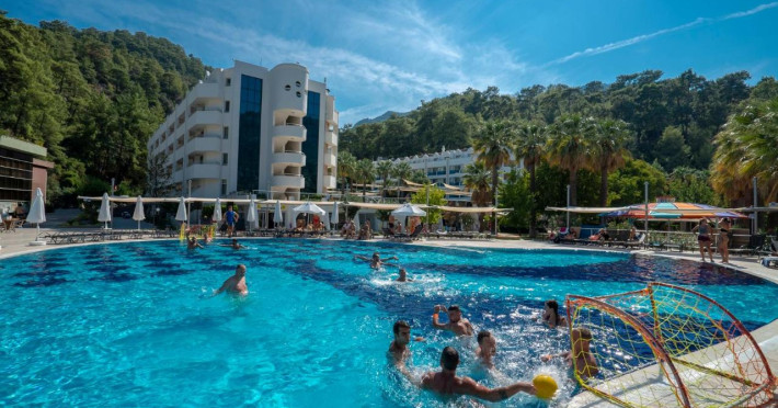 Localizare: hotelul este situat in apropiere de Plaja Turunc și la 47 km de Dalaman Airport. Facilitati hotel: 5 piscine, WiFi gratuit, transfer de la și/sau la aeroport, acces imediat la plajă, spa și centru de wellness, sală de fitness, restaurant, parcare gratuită, bar, zonă de plajă privată. Dotari camere: balcon, vedere la gradina, aer conditionat, baie privata, TV cu ecran plat, Terasa, Minibar, WiFi gratuit. Servicii contra cost: serviciu de transfer, serviciu de curatatorie si calcatorie, snorkelling, scufundari, facilitati sporturi nautice, pescuit, echipament tenis, biliard, masaj, sala fitness, spa si centru wellness, sauna, jacuzzi. IMPORTANT: Descrierea hotelului se bazeaza pe detaliile disponibile la momentul pregatirii tarifelor pentru sezonul turistic ce urmeaza a se desfasura si are caracter pur informativ. Hotelul poate aduce modificari de structura, denumiri camere, tip serivicii incluse/neincluse si altele, fara a notifica in prealabil. Pentru informatiile oficiale va rugam sa consultati website-ul hotelului.Datorita dinamicitatii domeniului disponibilitatea ofertelor se modifica de la un moment la altul. De aceea ofertele sunt valabile in limita locurilor disponibile. Agentia nu este responsabila pentru eventualele neconcordante care pot aparea intre informatiile privind tarifele si alte detalii din site si informatiile primite in agentie. In aceste cazuri vor avea prioritate, intotdeauna, informatiile primite in agentie.