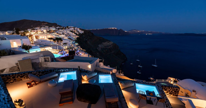Luxury private cave villas in Santorini offer a unique and unforgettable vacation experience. Our villas are built into the cliffs of the island, providing stunning views of the Aegean Sea and the Caldera.