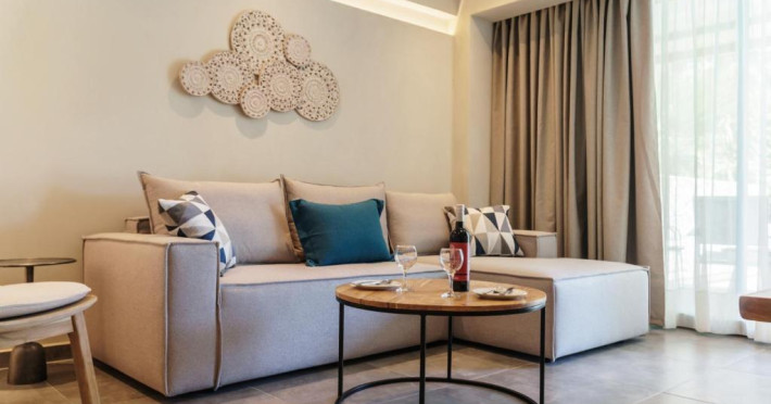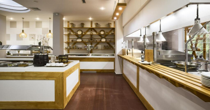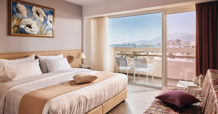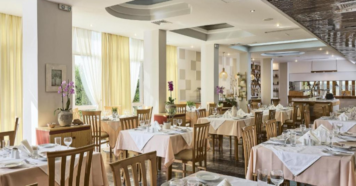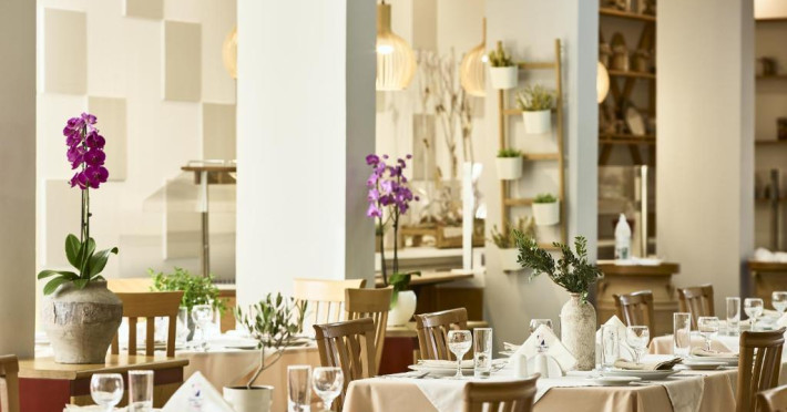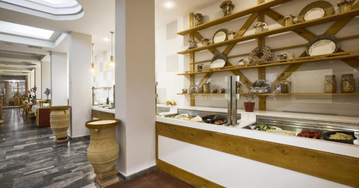 Micul dejun tip bufet european si grecesc este disponibil zilnic in restaurantul principal. In cursul zilei, restaurantul serveste preparate din bucătăria greacă, cretană și internațională.