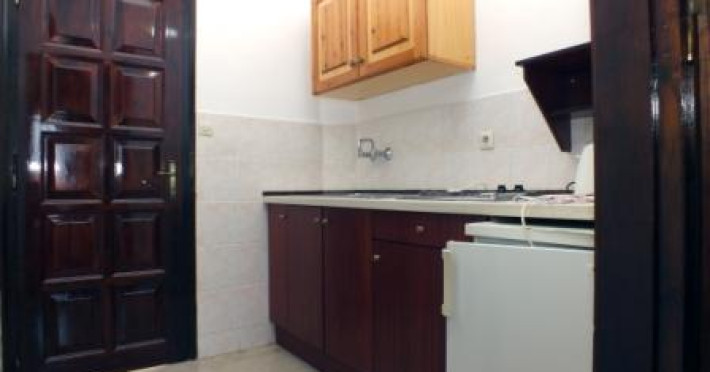 with two united single beds, a bathroom with shower and WC, a kitchenette which