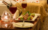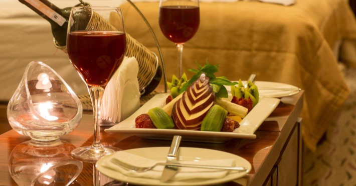 Zilnic este oferit un mic dejun tip bufet. Restaurantul Teras, cu vedere la Cosurile Sanzienelor, servește preparate din bucătăria traditională si deserturi.