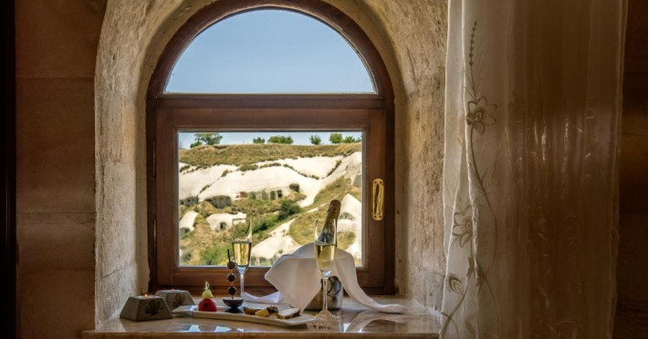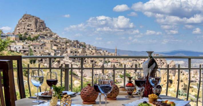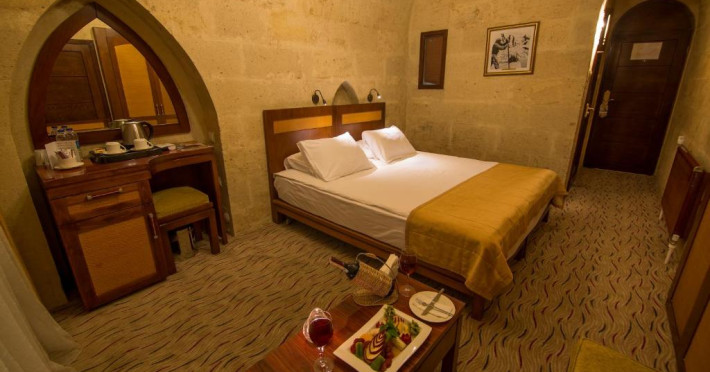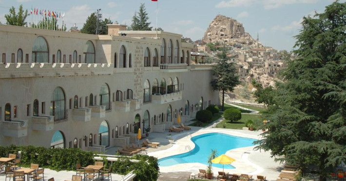 Situat la doar 5 km de muzeul in aer liber Goreme, Hotelul Uchisar Kaya este primul hotel din zona Cappadocia sculptat intr-o rocă, avand vedere panoramică la Cosurile Sanzienelor. Oferă piscine, acces WiFi gratuit și camere cu aer condiționat și TV.