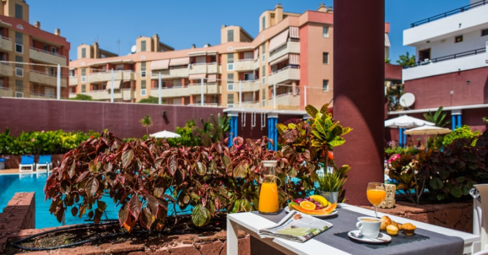 The apart hotel Caledonia Udalla Park is located approx. 500 m from a sandy/stone beach. The nearest restaurants and bars can be found within 100 m. The city centre is around 400 m away. The nearest shops you can reach within around 500 m, a supermarket is around 200 m away. There is a shuttle service between the hotel and the airport. In the surrounding a disco (approx. 800 m away), a leisure and aqua park (approx. 2 km), a theatre (approx. 2 km), a cinema (approx. 400 m) and a golf course (approx. 2 km) offer entertainment during the best time of the year. The beach is patrolled by a lifeguard and awarded a blue flag. Here, there are beach towels available. Near the beach there is a promenade where you can go for a stroll. The air-conditioned hotel is equipped with a 24h reception (check-in is possible around the clock), Wi-Fi, a lift, cash machine, a hairdresser, showers and changing rooms as well as a first aid kit. In the outdoor area of the property you will find a seasonally open, heated pool (open all year), where sun loungers, sun umbrellas and pool towels are available for free. For children there is also a children's pool. Furthermore, you can relax outdoors on the sun terrace. You can store your valuables in the safe (extra fee), and your luggage in the hotel`s storage roomn. For very young guests, kid`s chairs, highchairs and cots can be provided (for a fee). For the smallest children prams can be rented in the hotel. To clean your clothes there are a laundry service (extra fee) and an ironing service. Guests at the accommodation can get a wake-up call from the hotel personnel. If you want to explore the holiday region, you can use the car and motorbike rental service close to the hotel. In addition, the hotel sells tickets excursions. Catering As catering services the hotel offers breakfast only. Breakfast is offered continental or from the buffet (extras on request). For the meals, there are a restaurant (calorie-reduced and gluten-free dishes) and the cafeteria as well as the pool bar. Distances