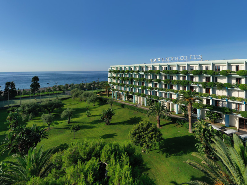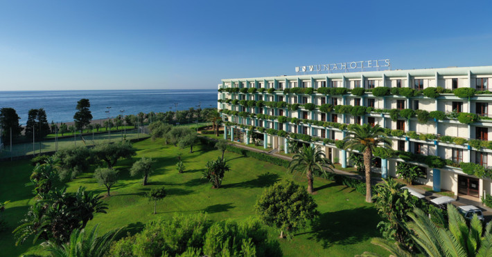 IMPORTANT: Descrierea hotelului se bazeaza pe detaliile disponibile la momentul pregatirii tarifelor pentru sezonul turistic ce urmeaza a se desfasura si are caracter pur informativ. Hotelul poate aduce modificari de structura, denumiri camere, tip serivicii incluse/neincluse si altele, fara a notifica in prealabil. Pentru informatiile oficiale va rugam sa consultati website-ul hotelului.- The Unahotels Naxos Beach is a tourist complex perfectly inserted in Giardini Naxos, one of the most beautiful touristic place of the eastern coast of Sicily. The Unahotels Naxos Beach has been built over an area of 14 hectares dominated by the imperious Etna Volcano and shading off to the sea. The whole complex is surrounded by a huge park of citrus fruits, olive groves and many kinds of flowers.