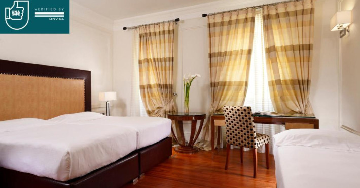 UNAHOTELS Decò Roma se află la doar 100 de metri de gara Termini și oferă design modern, zone interioare luminoase, camere cu aer condiționat și podea din lemn și parcare privată in garaj.
