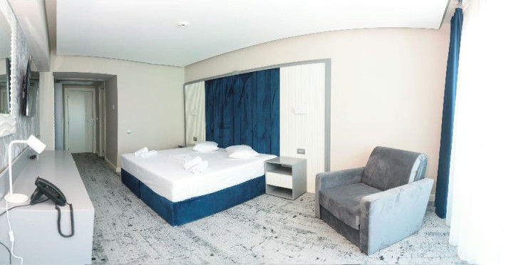 Camerele duble superioare 4* sunt situate in corpul nou, cu mobilier modern si seif. Suprafata camerei este de aproximativ 25 mp, are pat matrimonial de 200x200 cm, iar o parte dintre aceste camere au fotoliu extensibil (utilizabil contra cost), precum si vedere frontala la mare.