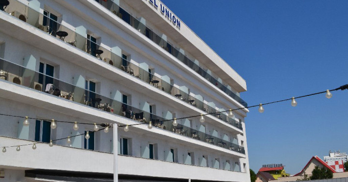 Hotel Union este situat in statiunea Eforie Nord, la 50 m de plaja. Facilitati hotel: restaurantul (capacitate de 200 locuri), terasa, sala de conferinte (40 locuri), 2 lifturi panoramice, piscina noua, finalizata 2022,sezlong pentru piscina , sector de plaja privata parcare, internet wireless. Incepand cu anul 2022 hotelul va dispune de un corp nou cu 69 de camere, totalizand astfel 169 de camere din care 69 duble superioare la 4* si 100 duble si apartamente la 3* Camerele sunt diferentiate intre ele astfel: camera dubla standard 3*, camera dubla vedere mare 3*, apartamente 4* In camerele duble standard 3* nu se poate adauga pat suplimentar. Camerele duble superioare au o dimensiune ce pleaca de la 22 mp la care se aduga baia si holul. Facilitati camere: baie proprie, tv-cablu, minibar, aer conditionat, internet WI-FI. Unele camere au balcon.Datorita dinamicitatii domeniului disponibilitatea ofertelor se modifica de la un moment la altul. De aceea ofertele sunt valabile in limita locurilor disponibile. Agentia nu este responsabila pentru eventualele neconcordante care pot aparea intre informatiile privind tarifele si alte detalii din site si informatiile primite in agentie. In aceste cazuri vor avea prioritate, intotdeauna, informatiile primite in agentie.