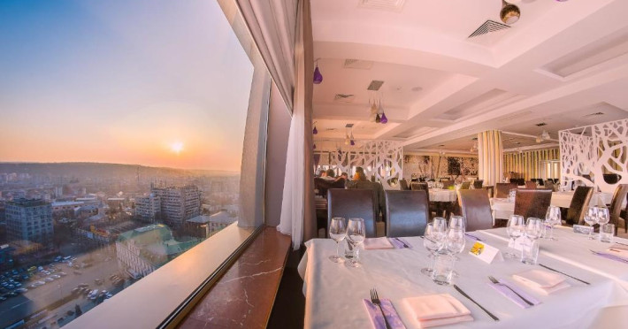 Oaspeții pot savura preparate din bucătăria romanească sau internațională la restaurantul Panoramic, situat la ultimul etaj, cu vedere frumoasă la oraș și la Piața Unirii. In holul elegant al hotelului se află un lounge bar rafinat.