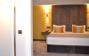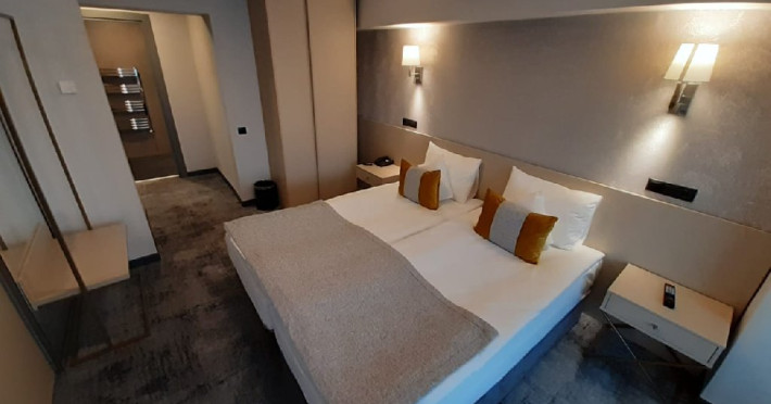Camera dubla, formata din 2 paturi twin, baie cu dus, uscator de par, internet, TV,AC,minibar, telefon.