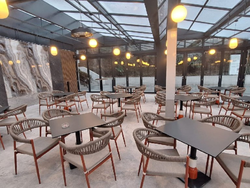 Terasa de langa lac, umbrita de salcii si copaci frumosi, este o oaza de liniste si natura chiar AZn inima orasului si mediul ideal pentru a te bucura de un pranz linistit, o cina cu prietenii sau pur si simplu sa savurezi un desert sau o cafea de dupa-amiaza in aer liber. Fiecare dintre terase poate gazdui pana la 75 de persoane.