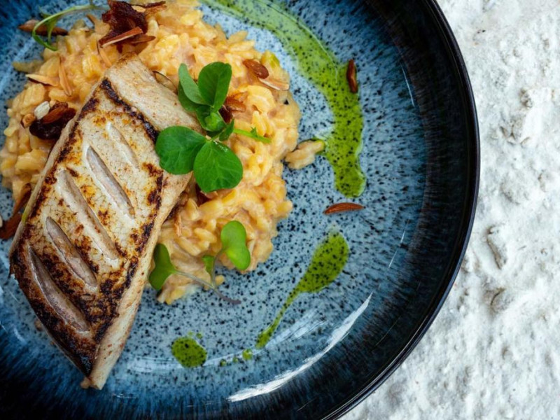 Barul și restaurantul de pe plajă oferă fructe de mare proaspete, bucătărie locală și internațională și vedere la restaurantul The Rock. Oaspeții se pot bucura, de asemenea, de un brunch de duminică, insoțit de muzică.