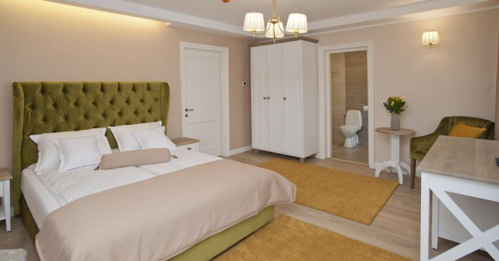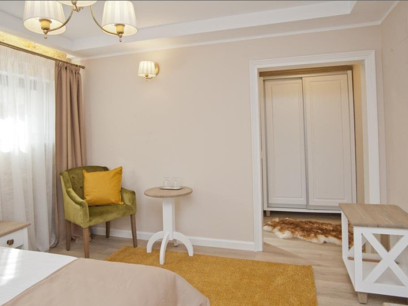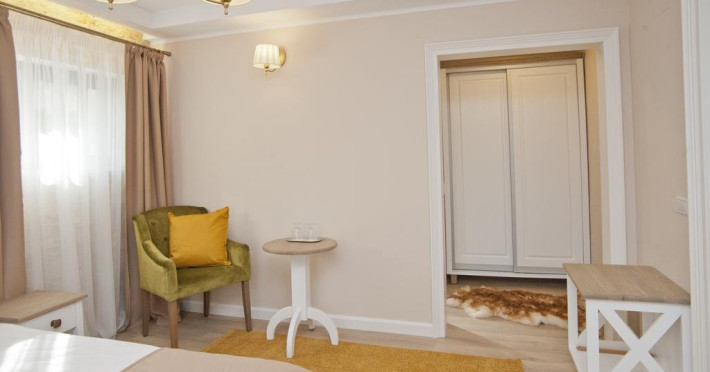Fiecare dintre cele 4 apartamente si 6 camere duble sunt unice, fiecare avand o nota personala si cate una din operele unicat ale unui artist ce reproduce bucati din istoria orasului prin intermediul picturii cu cafea. Designul interior surprinde o paleta de culori indrazneata, imbinand ultimele trenduri ornamentale. Atentia la detalii se poate observa atat in decorul interior al fiecarei incaperi, cat si in arhitectura rustica, iar pasiunea si profesionalismul personalului va va face sederea mai placuta.
