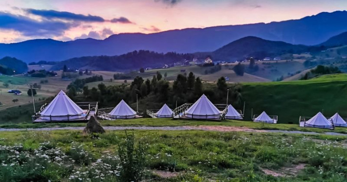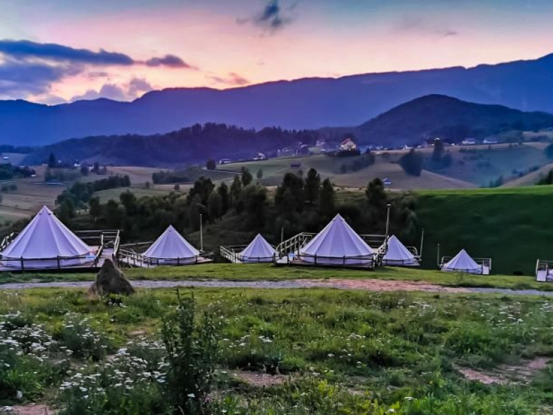 Toate cele 12 corturi impermeabile au vedere spre panorama spectaculoasa a Pietrei Craiului si poarta nume stelelor si constelatiilor pe care le poti vedea de pe terasa. Ele pot fi rezervate pentru minim 2 adulti si maxim 4 persoane (inclusiv copii). Fiecare persoana plateste pretul per persoana. Pretul indicat este pentru 2 adulti, restul persoanelor trebuiesc adaugate la rezervare.