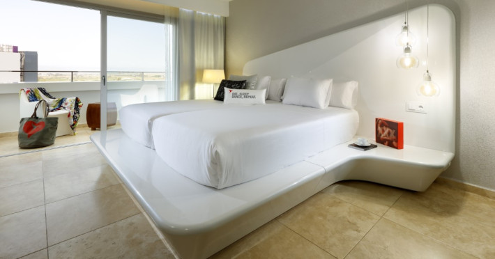 This worldwide famous establishment is superbly located in the heart of Playa den Bossa, a major holiday resort on the Spanish island of Ibiza. It is an amazing leisure and party hotel ideal for young people wishing to make the best of their holidays. It has everything for a relaxed stay, although it is perfect for those looking for an original and exciting stay in a quality hotel. The guest rooms feature a minimalist décor and natural finishes come together with the state-of-the-art technology in order to guarantee a comfortable stay. All the guests who have the chance to stay at this stunning complex will have free access to the amazing hotel parties.This worldwide famous establishment is superbly located in the heart of Playa den Bossa, a major holiday resort on the Spanish island of Ibiza. It is an amazing leisure and party hotel ideal for young people wishing to make the best of their holidays. It has everything for a relaxed stay, although it is perfect for those looking for an original and exciting stay in a quality hotel. The guest rooms feature a minimalist décor and natural finishes come together with the state-of-the-art technology in order to guarantee a comfortable stay. All the guests who have the chance to stay at this stunning complex will have free access to the amazing hotel parties.