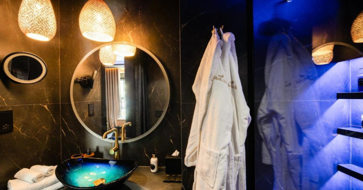 Camerele luminoase și spațioase sunt decorate in tonuri mediteraneene și dispun de balcoane private. Facilitățile de wellness includ un centru spa sofisticat cu piscină interioară, saună și o gamă variată de tratamente de relaxare. La piscina exterioară, oaspeții se pot bucura de soare pe șezlonguri confortabile, savurand cocktailuri de la barul piscinei.