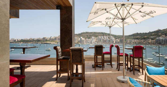 Restaurantul principal servește preparate mediteraneene și internaționale, iar restaurantul à la carte oferă o experiență culinară rafinată cu specific maltez. Poziționarea hotelului permite explorarea ușoară a golfului St. Paul's Bay și a zonelor istorice din imprejurimi.