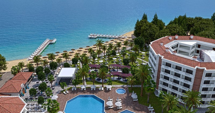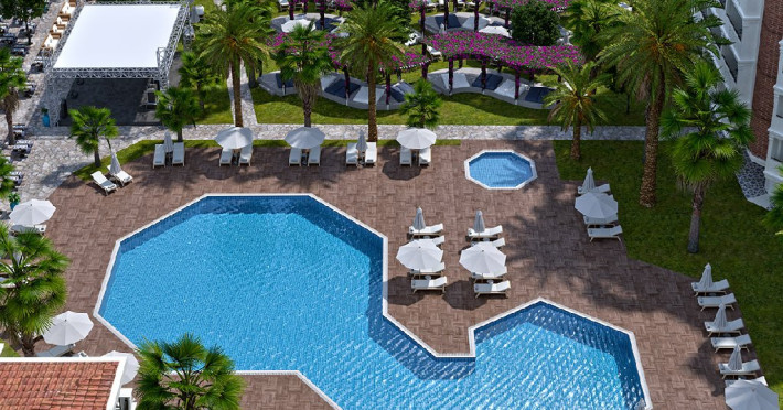 Facilitati hotel: Hotelul pune la dispozitia clientilor restaurant, beach bar, patiserie, snack bar, gozleme, night snack, lobby bar, bar la piscina, bistro, mini golf, yoga, volei, lectii de zumba, pilates, sala de fitness, spa si wellness, Kids club, animatie si baby sitting (contra cost).