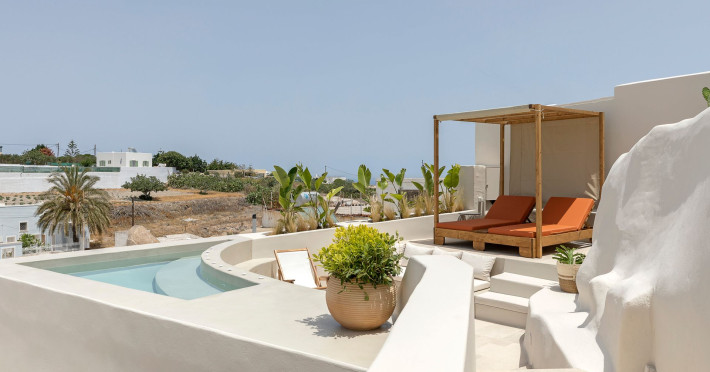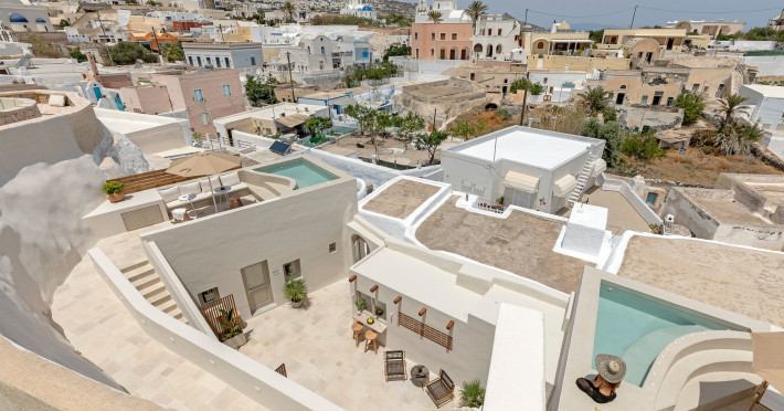 This astonishing residential complex has four different suites. Nestled among white-washed cave houses and churches, it enjoys the traditional village of Karterados from its private terraces. Originally built in the late 18th century, it served as a wine press and residence. The old “canaves” have been transformed into spacious suites retaining the Cycladic authenticity.Here the guest will encounter a place of calmness, originality, spirituality, and luxury all in harmony with natural preexisting forms dug into the volcanic soil. Utopia Villas offer a unique hospitality experience, influenced by the island of Santorini with beautiful touches of Cycladic authenticity. Here everything is about ease and our guests only have to slow down and embrace happiness affected by the euphoric vibe of a true utopian setting. This private oasis of wellness and natural beauty, unpretentious and mystical, will offer you a memorable experience.This astonishing residential complex has four different suites. Nestled among white-washed cave houses and churches, it enjoys the traditional village of Karterados from its private terraces. Originally built in the late 18th century, it served as a wine press and residence. The old “canaves” have been transformed into spacious suites retaining the Cycladic authenticity.Here the guest will encounter a place of calmness, originality, spirituality, and luxury all in harmony with natural preexisting forms dug into the volcanic soil. Utopia Villas offer a unique hospitality experience, influenced by the island of Santorini with beautiful touches of Cycladic authenticity. Here everything is about ease and our guests only have to slow down and embrace happiness affected by the euphoric vibe of a true utopian setting. This private oasis of wellness and natural beauty, unpretentious and mystical, will offer you a memorable experience.