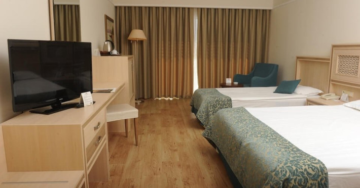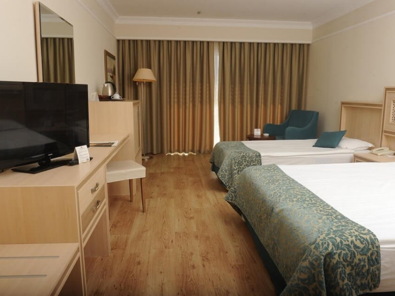 Facilitati hotel: Hotelul ofera oaspetilor sai urmatoarele facilitati: restaurant principal, 3 restaurante a la carte, 6 baruri, inghetata, patiserie, piscina exterioara, aquapark, piscina interioara, teren de tenis, teren de basket, volei, mini fotbal, tenis de masa, discoteca, programe de animatie, centru fitness, baie turceasca, sauna, jacuzzi, internet wi-fi, mini club 4-12 ani, mini disco, bufet pentru copii in restaurant, loc de joaca.