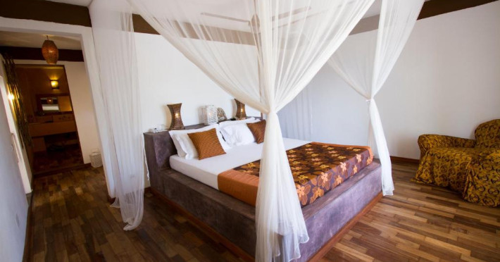 Camerele Junior Suite pot gazdui pana la trei persoane, cu anumite camere care includ si un pat de o persoana. Toate camerele sunt dotate cu aer conditionat, bai private si o terasa privata cu vedere la gradina luxurianta din jur. Aceastea dispun de ventilator, plasa de tantari, seif, dressing, canapea, suport de haine, articole de toaleta gratuite, prosoape si uscator de par. Cele trei camere Suite pot gazdui pana la trei persoane si au si o canapea extensibila. Toate camerele sunt dotate cu AC si baie privata si au acces la o terasa privata cu vedere la plaja, la piscina, gradina si la Oceanul Indian. De asemenea, acestea au un pat king size, ventilator, plasa de tantari, seif, facilitati de calcat, birou, zona de relaxare, suport de haine, articole de toaleta gratuite, prosoape si uscator de par.