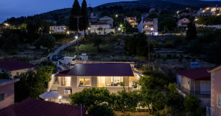 An eco-villa, Located at Dilinata (a small village close to Argostoli), featuring traditional architecture and modern furnishings, utilizing sustainable energy sources. Guests can enjoy enchanting sunsets and moments of relaxation, tranquility, and the comforts of a contemporary cottage.
