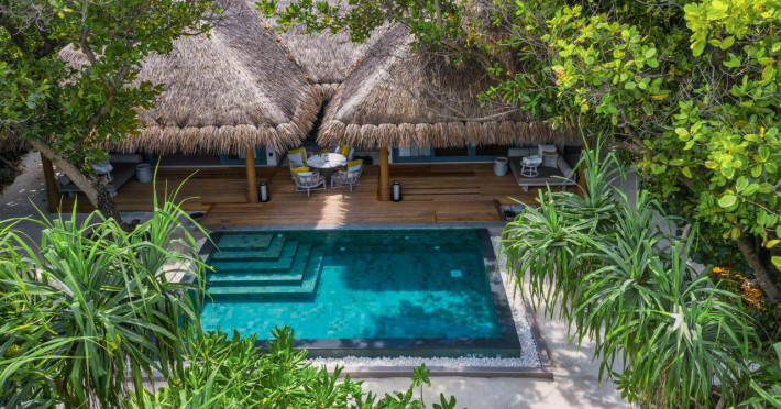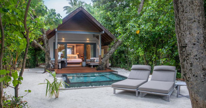 Toate cele 113 de suite și vile amplasate pe plajă sau deasupra apei sunt decorate practic, dar elegant, evidențiind farmecul rustic și atmosfera culturii maldiviene, cu o percepție incredibilă a spațiului și vedere uimitoare la ocean. Gazdele insulei sunt la dispoziția oaspeților pentru a se asigura că aceștia beneficiază de o experiență personalizată, corespunzătoare preferințelor fiecăruia.
