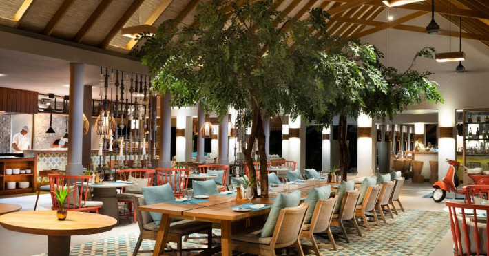 Oaspeții au la dispoziție 4 restaurante și 2 baruri, beneficiind de o călătorie gastronomică. Restaurantul Amaany oferă mese de mic dejun și cină, cu preparate internaționale, servite intr-o abordare maldiviană intr-un spațiu interior mare și luminos sau in aer liber. La restaurantul asiatic Onu, oaspeții se pot lăsa invăluiți de gusturile Asiei, insoțite de sunete ale naturii care le vor captura simțurile, in timpul cinei intr-o grădină liniștită. Isoletta este un restaurant italian modern, care servește preparate inovatoare și vinuri rafinate, la pranz și cină.