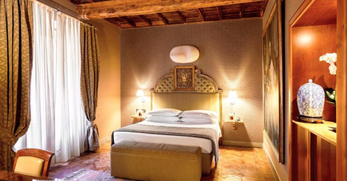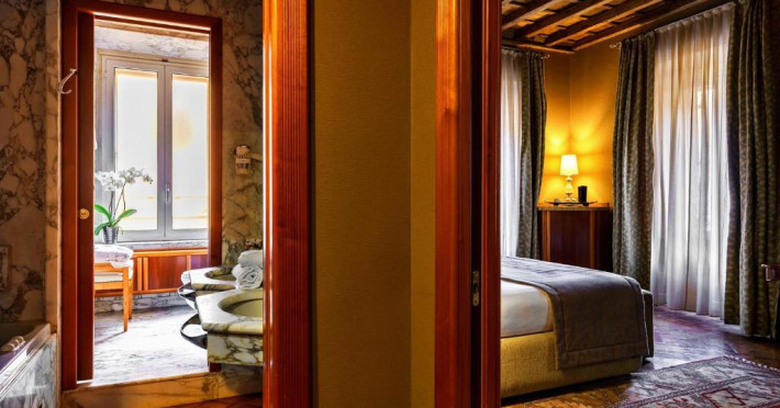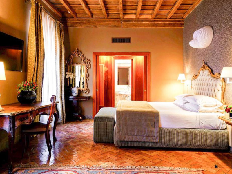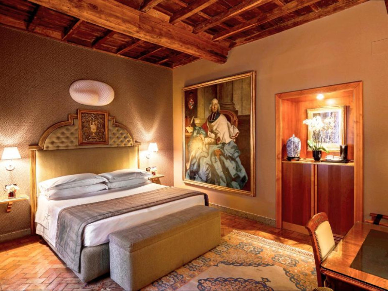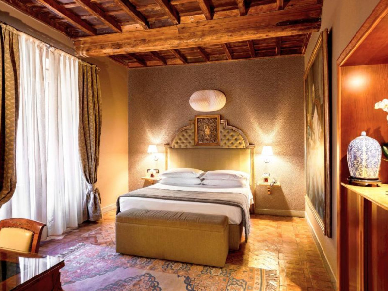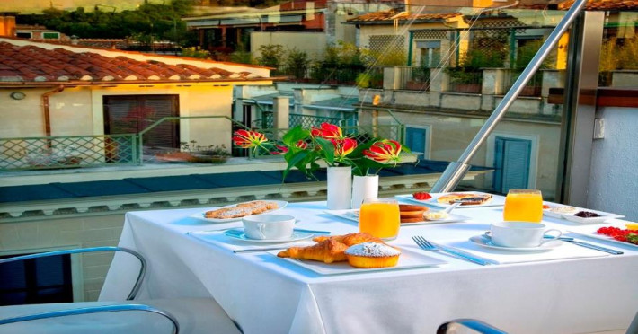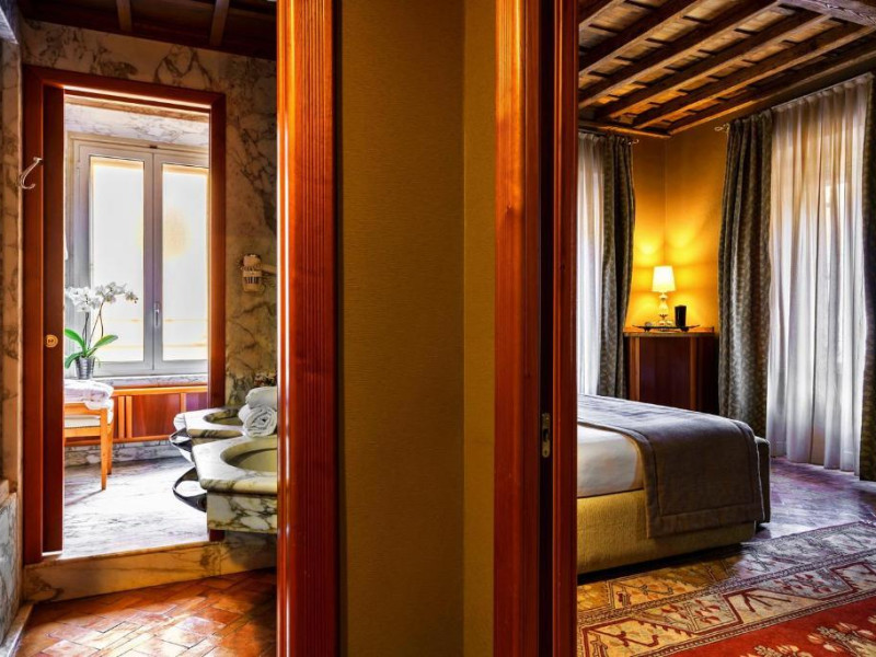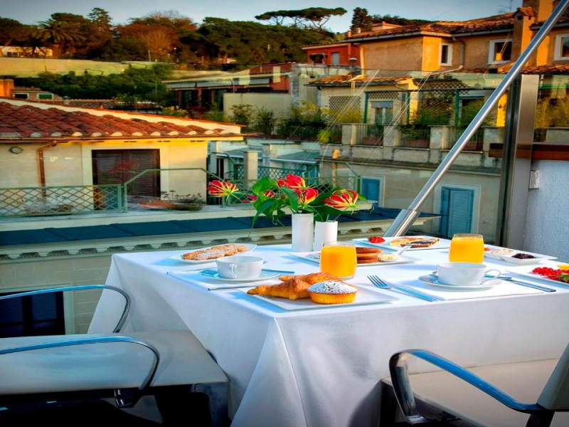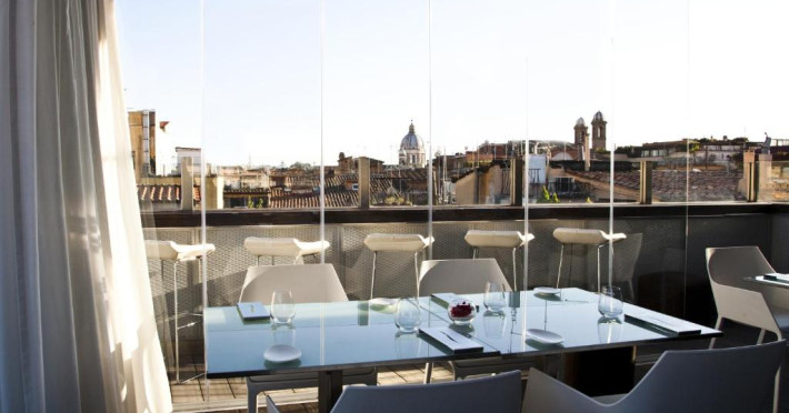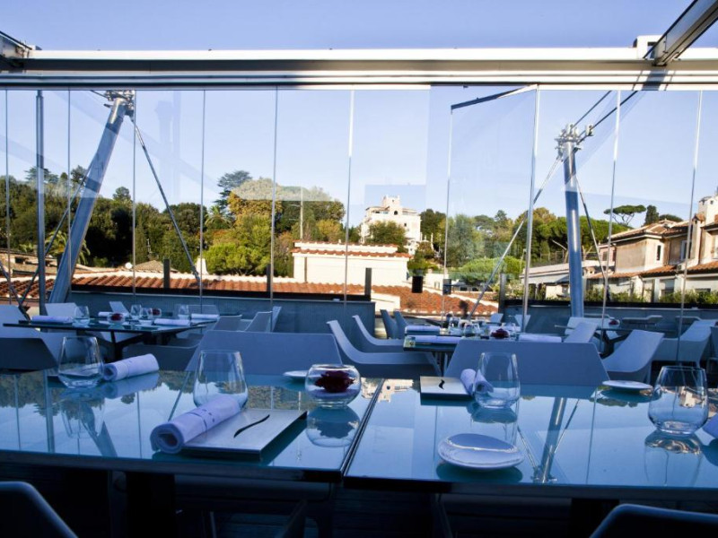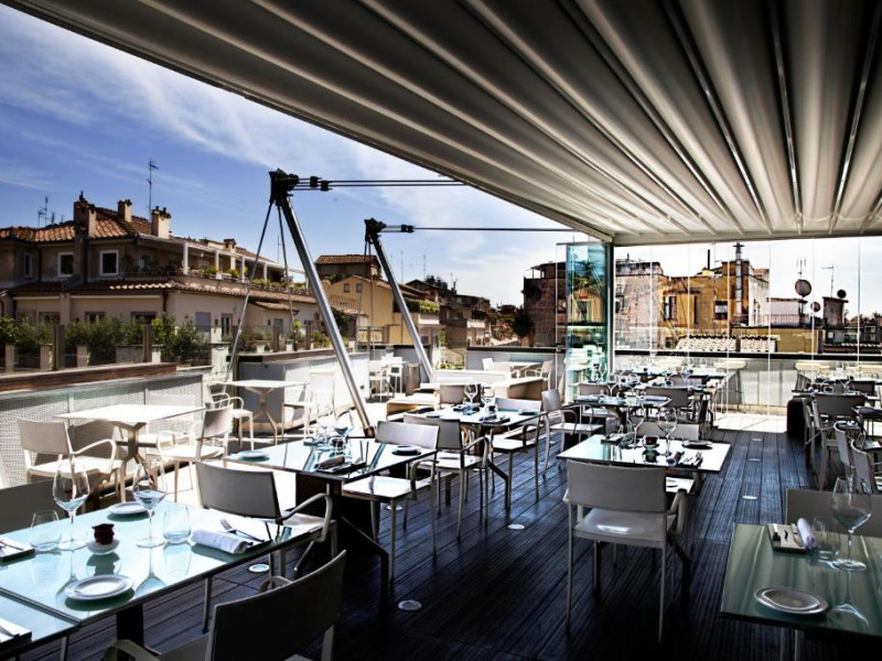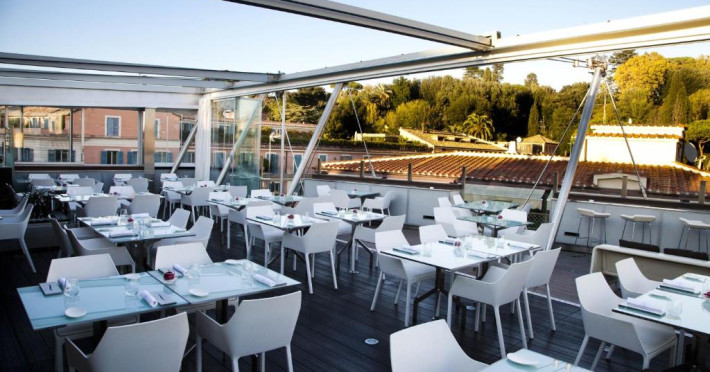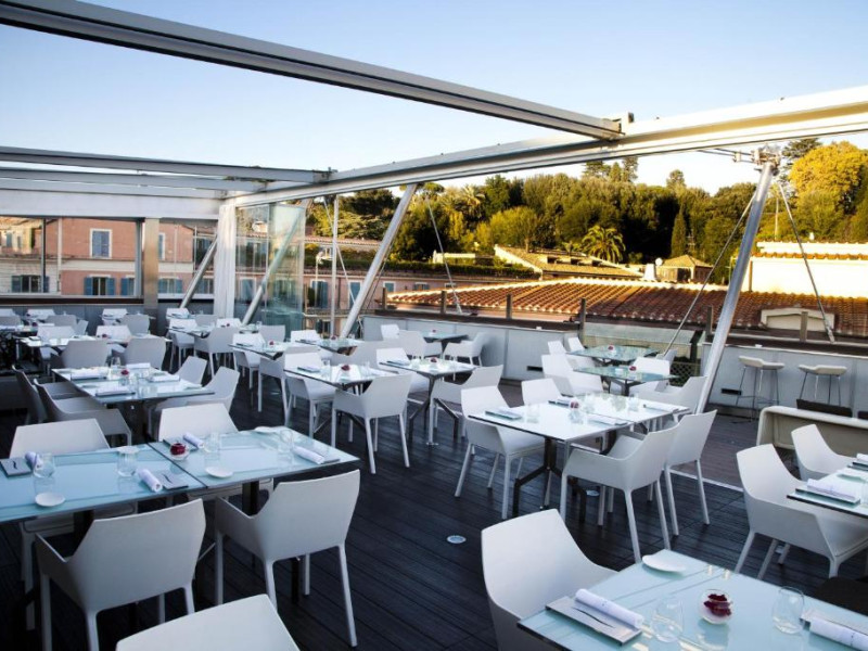 Oaspeții beneficiază de reduceri la cele 3 restaurante ale hotelului și la barul elegant, cu pian. Hi-Res este restaurantul exclusivist de pe acoperis, cu vedere la Roma. Crama de vin are peste 400 de mărci de vin.