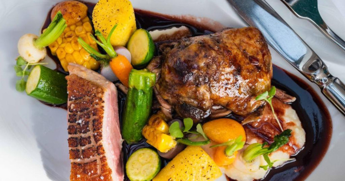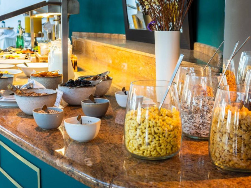 Restaurantul Olive Tree servește mancăruri portugheze și mediteraneene pe terasa, care are vedere la piscină. Hotelul oferă, de asemenea, barul Jasmin, care servește mese ușoare și opțiuni sănătoase preparate cu ingrediente proaspete.