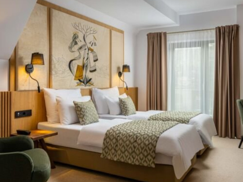 Valedor Hotel Boutique & Spa - clasificat 4 stele, este un sanctuar pentru cei care cauta o pauza de la ritmul agitat al vietii de zi cu zi, un loc in care oamenii se aduna pentru a se reincarca si a se reconecta cu ei insisi si cu natura. Cu o arhitectura in stil chalet alpin, ce combina designul modern, spiritul functional si luxul estetic cu stilul traditional, hotelul este cu siguranta locul ideal pentru a petrece o vacanta dedicata relaxarii, invaluita doar de frumusetea naturii. Include acces (3 ore/zi/persoana) la Centrul SPA cu piscina incalzita, sauna umeda si uscata, jacuzzi. Exista restaurant cu specific bucatarie traditionala.Camera dubla standard - Capacitatea camerei este de 2 persoane.Suprafata Camera : 24 mp. Dormitor (pentru 2 persoane: pat matrimonial, TV, baie (dus), WC (in baie). Camera dubla cu balcon - Capacitatea maxim a camerei este de 2 adulti. Cu copii sub 18 ani pot fi cazati in total 3 persoane in camer. Suprafata Camera : 24 mp. Dormitor (pentru 2 persoane) cu pat extra mare, dulap de haine, TV, baie (dus), WC (in baie)