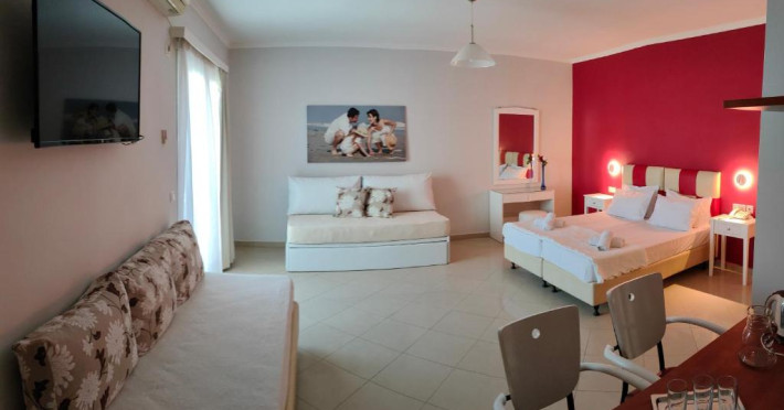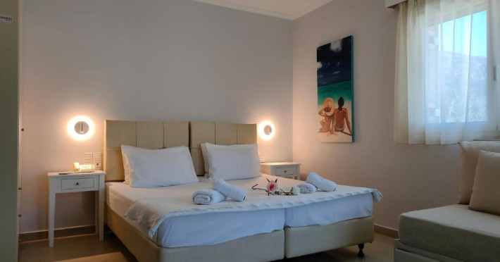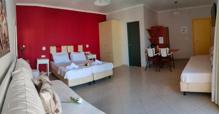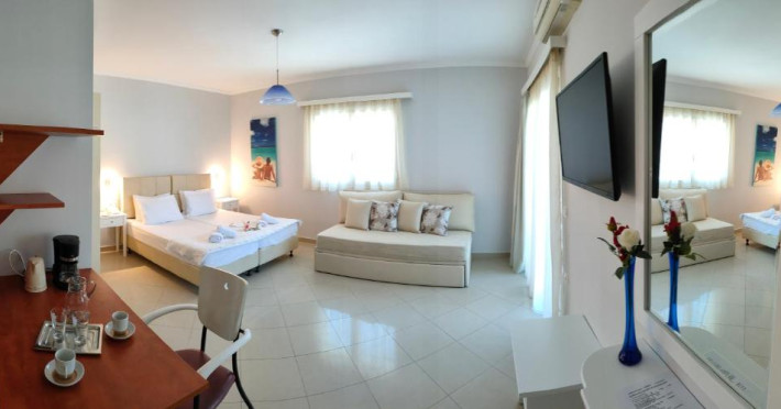 Tastefully decorated, all air-conditioned studios and 1-bedroom apartments of Valena open to a furnished patio or a balcony. Each has a flat-screen, satellite TV and a kitchen with stove or kitchenette with cooking hobs and dining table. Free Wi-Fi is available throughout.