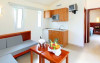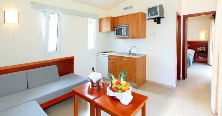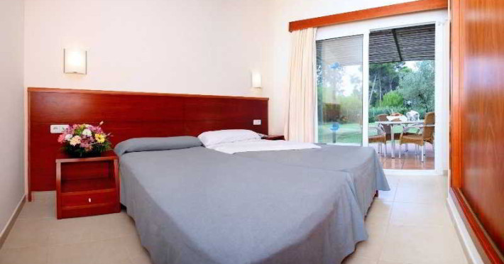 The hotel was built in 2004 and consists of several 1-storey bungalow houses with a total of 130 apartments. There is a lobby with a 24-hour reception, a safe and a currency exchange desk. The hotel possesses a café, a supermarket, a bar, a TV room, an air-conditioned à la carte restaurant with a separate non-smoking area (childrens highchairs also available), an Internet terminal, a bicycle storage facility and bicycle hire. A laundry service, medical assistance and a car park are all available for use. The hotel also has a charming, 60,000 m² garden..This leading beach hotel is peacefully located, surrounded by fragrant pine trees. Public transport leaves from directly in front of the hotel. It takes just a few minutes to reach the wonderful, sandy beach, scores of shops, restaurants, bars and a nightclub. Son San Joan airport is 60 km away (reached in 1 hour with public transport)..The debonair rooms are fitted with an en suite bathroom and a hairdryer. They are all equipped with a direct dial telephone, satellite/ cable TV, a stereo system, Internet access, a kitchenette, a fridge, tiling, central heating, a safe and a lounge area. The rooms are cleaning after they have been vacated by guests..A fine buffet is on offer at breakfast and in the evenings. Lunch may be taken à la carte. Guests may book an all-inclusive stay..The hotel has an indoor swimming pool with childrens paddling area, a poolside snack bar, sun loungers, parasols, aqua aerobics, a Jacuzzi, a sauna, a solarium, professional massages and a steam room. Sport enthusiasts are invited to try out the tennis, table tennis, aerobics or the gym or go riding, cycling, play basketball, beach volleyball, pool, golf or gymnastics. There are motorboats, catamarans, canoes and pedalos available for use on the sandy beach. Moreover diving, windsurfing, surfing and sailing are all on offer..MasterCard and VISA are all accepted by the hotel.Datorita dinamicitatii domeniului disponibilitatea ofertelor se modifica de la un moment la altul. De aceea ofertele sunt valabile in limita locurilor disponibile. Agentia nu este responsabila pentru eventualele neconcordante care pot aparea intre informatiile privind tarifele si alte detalii din site si informatiile primite in agentie. In aceste cazuri vor avea prioritate, intotdeauna, informatiile primite in agentie.