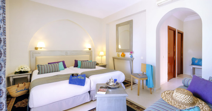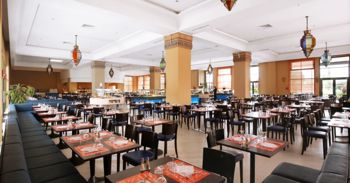 The hotel Valeria Dar Atlas Resort All Inclusive is located 3 km from the nearest bars and restaurants. The old town is around 12 km away. A supermarket is around 4 km away. There is a 24h shuttle service between the hotel and the airport (for a fee) 24h a day. The air-conditioned, GPS-verified halal hotel is equipped with a 24h reception, a lobby, Wi-Fi, internet access, a shop, a boutique, cash machine, a hairdresser, a jacuzzi, showers and changing rooms, a first aid kit, parking spaces as well as a TV lounge with satellite TV. In the outdoor area of the property you will find a garden as well as a seasonally heated pool (open all year) with clubhouse, where sun loungers, sun umbrellas and pool towels are available for free. There is also a separate children's pool with a water slide (type twister/open slide/tunnel slide). Furthermore, you can relax outdoors on a roof terrace. Inside the hotel you can use a heated indoor pool. You can store your valuables in the safe (extra fee), and your luggage in the hotel`s storage room. In addition, the hotel Valeria Dar Atlas Resort All Inclusive is video-monitored 24h a day. For your entertainment, the hotel offers a theatre and a disco. For the young hotel guests there is a playground. For very young guests, kid`s chairs can also be provided. There is also a laundry service available at an additional cost to customers. Ironing equipment can be rented at the hotel for a fee. For your comfort the hotel page will ensure you are looked after. If necessary, you can contact the medical centre (for a fee). For conventions and other business meetings, the hotel offers EXTRA_FEE (auditorium-style) conference rooms with a total of 400 seats, a reception, tables, a video projector, printer, internet access as well as a catering service. A photographer can also be ordered from the hotel for business events. If you want to explore the holiday region, you can use the car rental service close to the hotel (extra fee). At the reception, tickets are offered for excursions in the area. For guests on their honeymoon, the hotel has special offers such as a romantically-decorated room, personalised rooms/articles, rooms with a particularly romantic location and view, special honeymoon packages, romantic dishes in the restaurant, champagne, sparkling wine, a present, a basket of fruit or flowers in the room. In your hotel, a lot of focus is placed on sustainability. This includes the hotel`s own recycling bins, the provision of soap, shampoo and lotion dispensers, ecological meals and environmentally-friendly cleaning. That is why the hotel Valeria Dar Atlas Resort All Inclusive was also awarded a sustainability certificate. Euro/Master Card and EC cards are accepted as means of payment. Due to its barrier-free facilities , such as barrier-free entrances and wheelchair accessible rooms, the hotel is also suitable for wheelchair users. Catering As catering services the hotel offers all-inclusive. Breakfast is offered American, continental or from the buffet. Lunch and dinner are also served à la carte or from the buffet with starters, salads and desserts. When booking all-inclusive, one welcome drink and - for an extra fee - one meal in the à la carte restaurant are included. As part of the all-inclusive service, international alcoholic beverages (limited) are available around the clock and at no extra charge. For the meals, there are a buffet restaurant with terrace (Italian and Mediterranean dishes) and several bars as well as the pool bar. The drinks menu of the hotel includes soft drinks, coffee and tea, beer, wine and 24h international alcoholic beverages. Distances